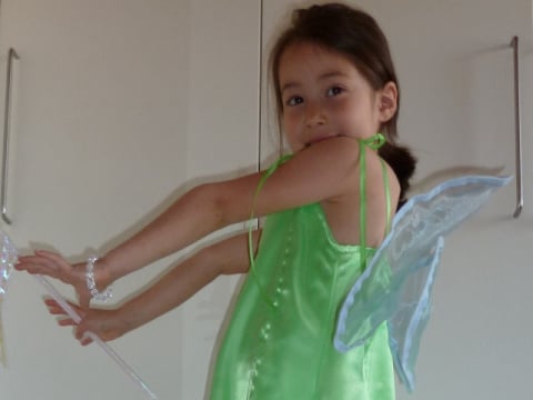 Bestaat uit jurk, vleugels, en toverstaf.