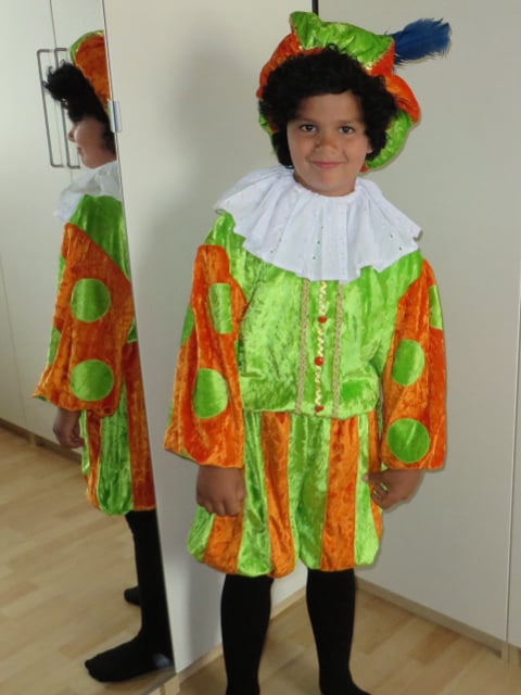 Bestaat uit broek, maillot, jas, kraag, pruik en muts. Schmink en lippenstift is eveneens verkrijgbaar.