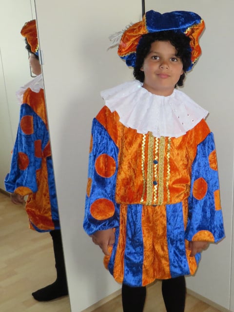 Oranje/blauw, maat 140-146.
