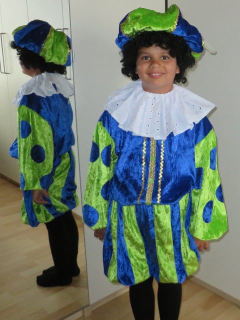 Bestaat uit broek, maillot, jas, kraag, pruik en muts. Schmink en lippenstift is eveneens verkrijgbaar.