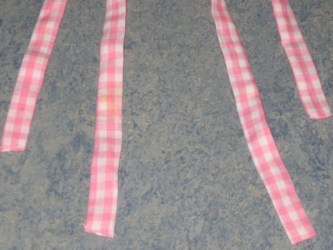 Bestaat uit blouse, witte broek, haarstrikjes, en fles.