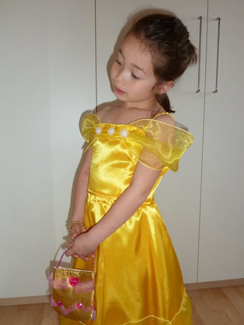 Bestaat uit rok, top, petty coat, tasje, en armbandje.