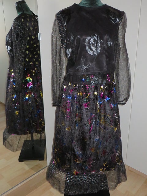 Rok met spinnenweb print. Blouse met diverse designs, organza mouwen, voorpand met pompoen/spinnen print, achterpand met sterren print. Bijpassende heksenhoed en petticoat apart verkrijgbaar.