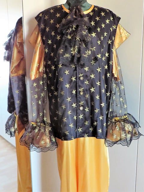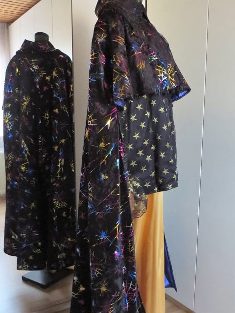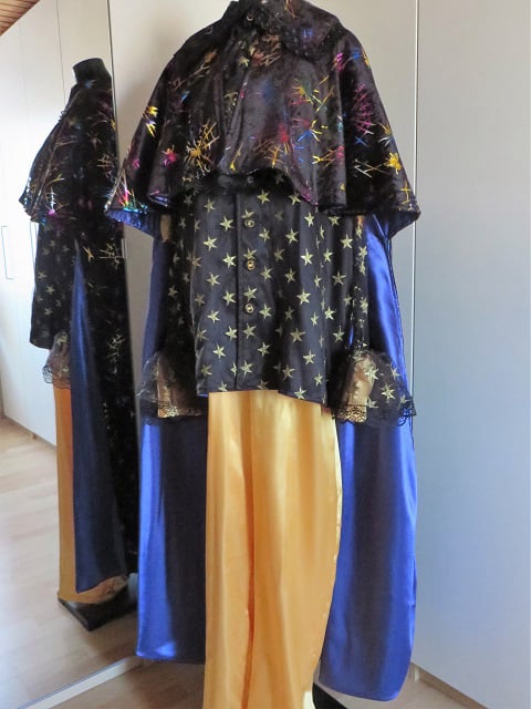 Bestaat uit 5 delen. Overal, jabot, manchetten, vest en cape. Kan zowel los als bij elkaar gedragen worden.