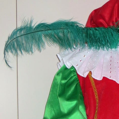 Bestaat uit broek, zwarte maillot, jas, kraag, pruik (zwart / bruin / regenboog), haarnetje, col, muts met veer, handschoenen, oorbellen, roe, en zak. Schmink voor zwarte piet, roetveegpiet of regenboogpiet en lippenstift zijn eveneens verkrijgbaar.