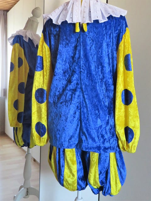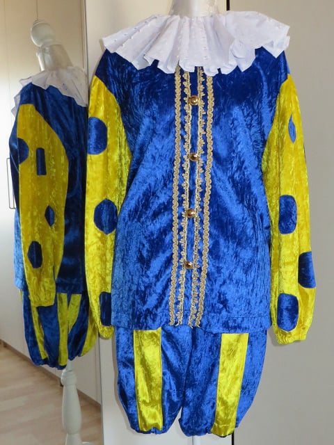 Bestaat uit broek, maillot, jas, kraag, pruik en muts. Schmink en lippenstift is eveneens verkrijgbaar.
